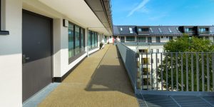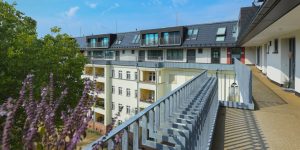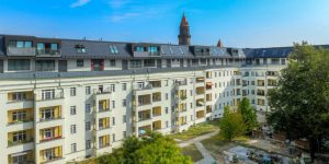 Neubau des Dachgeschosses mit neuer Dachform und zwei neuen Geschossebenen. Mit 58 Wohnungen. Davon sind 22 Wohnungen barrierefrei und 32 Maisonettewohnungen. Die restlichen 10 Wohnungen liegen in den 4 Eckhäusern.