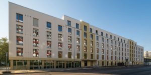 Die Wohnanlage für Studierende befindet sich in Hochschulnähe. Sie bietet voll ausgestattete, zum Teil barrierefreie Apartments mit eigenem Bad und Pantryküche. Gemeinschaftsflächen sowohl innerhalb des Gebäudes als auch im Außenbereich schaffen Begegnungsmöglichkeiten und bereichern das studentische Leben. Im Erdgeschoss befindet sich ein Waschsalon als Serviceangebot.
